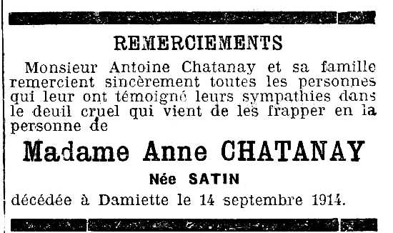 SATIN Anne ( °20 février 1845 Givors,69700,Rhône,Auvergne-Rhône-Alpes,France - 14 septembre 1914 Damiette, Médéa,Algeria )